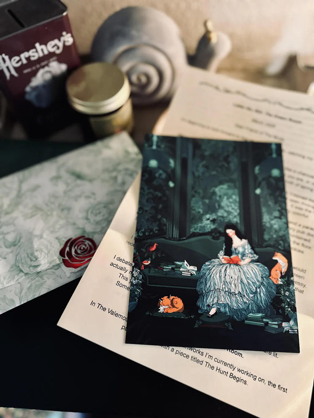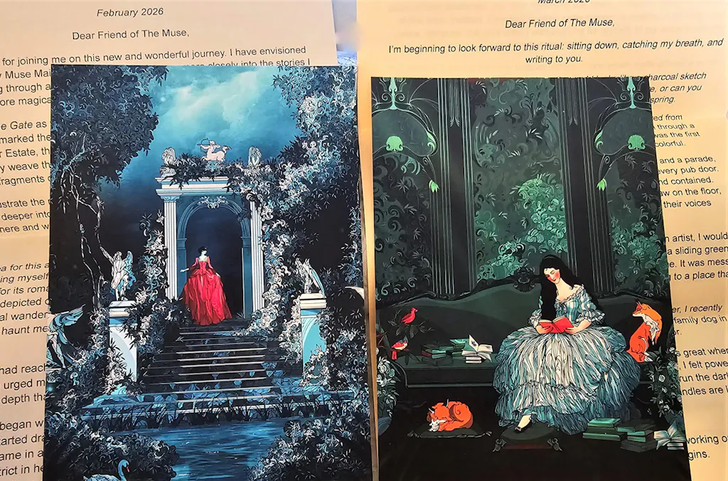 The Monthly Muse Mail Club is a recurring snail mail subscription for collectors, readers, and dreamers who love art, storytelling, and tangible objects. It’s an opportunity to connect with my work beyond the screen in a way that feels personal and real.